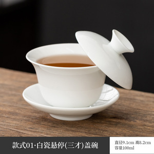 悬停盖碗羊脂玉泡茶三才德化陶瓷白瓷盖碗茶茶杯家用功夫茶具茶碗