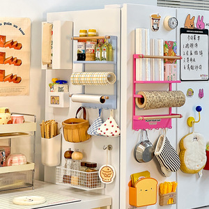 懒人学堂多巴胺冰箱磁吸置物架装饰外侧面收纳神器珐琅板保鲜膜架