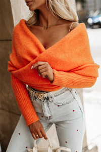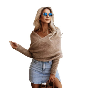 2025新款欧美时尚V领交叉多色毛衣潮流个性露肩多种穿法围巾款8色