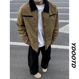 港风复古字母刺绣底特律工装夹克cleanfit外套潮牌高级感棒球服
