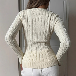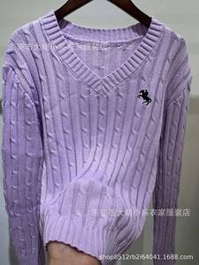 欧美跨境女装刺绣麻花纽绳V领长袖套头女装春款上衣针织毛衣