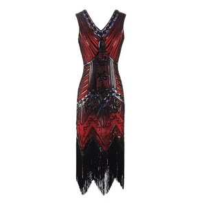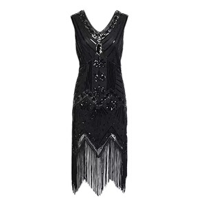 跨境欧美1920s亮片钉珠流苏无袖背心V领连衣裙时尚晚礼服亚马逊