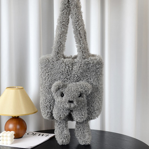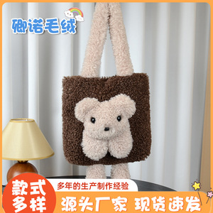 仿羊羔毛女托特包25新款时尚简约单肩手提包包仿皮草羊毛绒单肩包