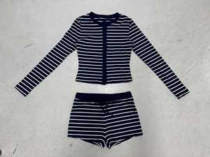 休闲条纹撞色半开领修身显瘦上衣短裤套装跨境新品百搭气质两件套