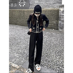 7064大量现货秋季新款高级感港风复古chic韩系针织阔腿裤两件套装