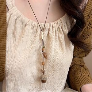 岁稔纹章 新中式橡果木质吊坠项链女复古小众设计毛衣链挂脖配饰