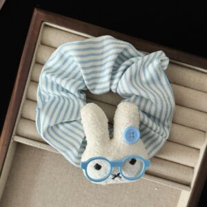 秋季新款毛绒小兔扣子蓝色条纹大肠发圈可爱女孩风马尾肥肠圈发饰