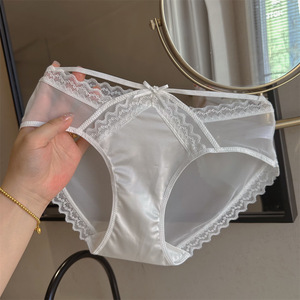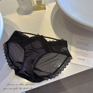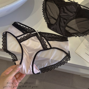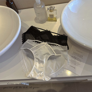 法式优雅纯欲风纯白黑色缎面镂空系带低腰三角内裤少女甜美夏棉档