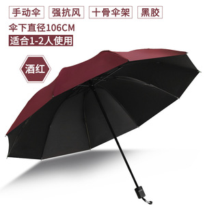 十二骨手动黑胶抗风暴伞【酒红】