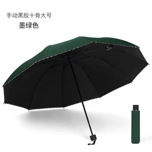 十骨手动黑胶包边伞【墨绿】