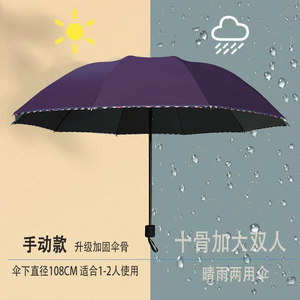 雨伞大号雨伞男女加大加固晴雨两用学生手动三叠黑胶防晒遮阳伞
