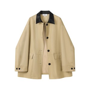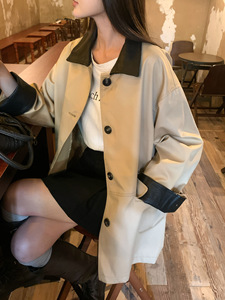 意法韩系撞色拼皮设计小个子短款风衣女早秋气质宽松外套撞色拼接