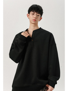 亨利领肌理感卫衣长袖t恤男春季潮牌重磅内搭宽松潮流痞帅打底衫
