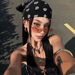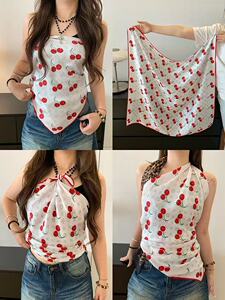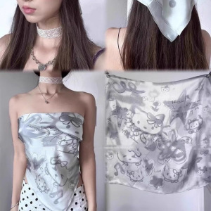 跨境辣妹丝巾抹胸方巾Y2K小众设计头巾百搭彩色猫咪印花发带围巾