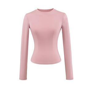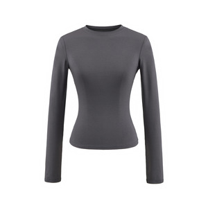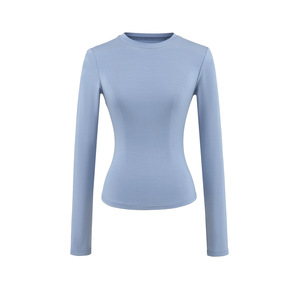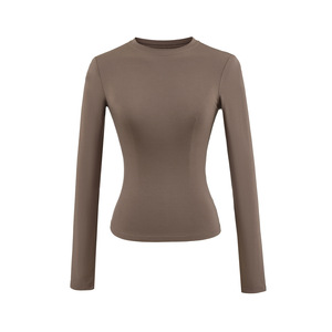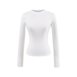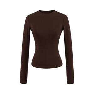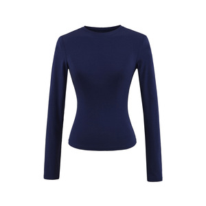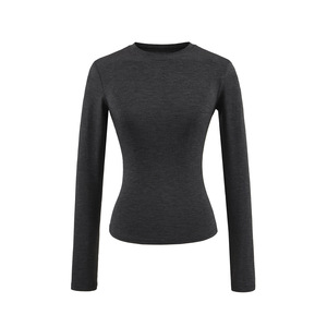 卡戴珊圆领长袖T恤女秋季基础款修身内搭弹力收腰纯色打底衫上衣