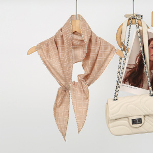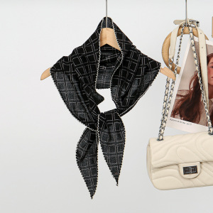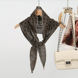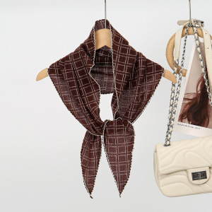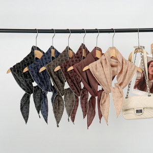 新款棋盘格菱形巾丝巾百搭围巾春夏护颈装饰头巾领巾日韩针织围巾
