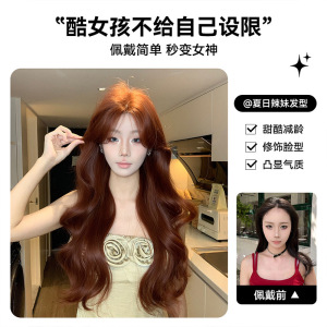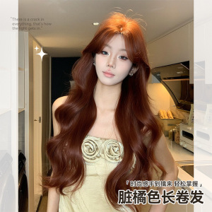 简抒【橘月流光】假发女脏橘色韩系气质中分大波浪长卷发全头套