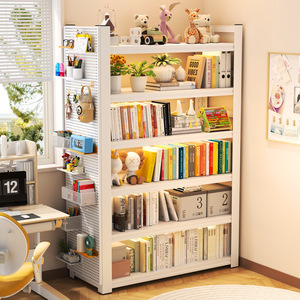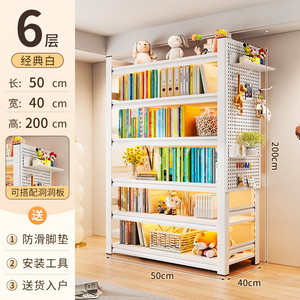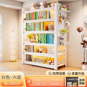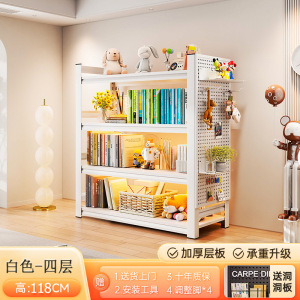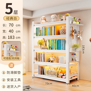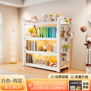 洞洞板钢制书架落地置物架家用儿童书籍收纳架客厅靠墙多层储物架