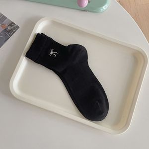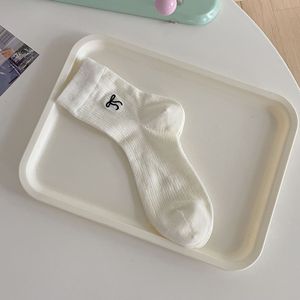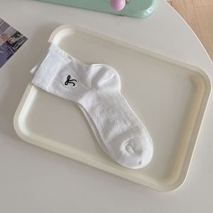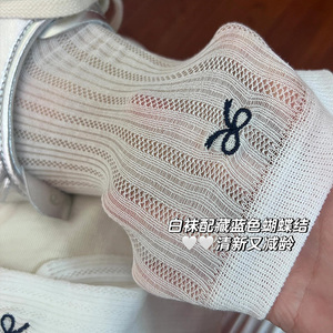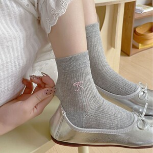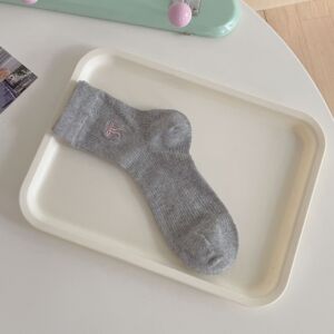 灰色蝴蝶结袜子女短袜夏季薄款刺绣纯棉网眼透气miu系芭蕾风中筒