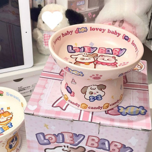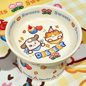 可爱卡通耐高温一擦即净防打翻保护颈椎陶瓷高脚宠物猫碗