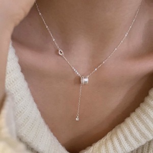 新款拉丝路路通滚轮项链女s925纯银锁骨链小众轻奢高级感配饰品潮