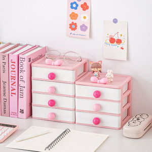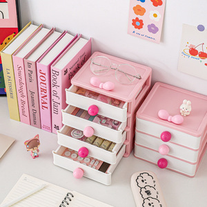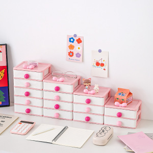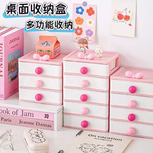 抽屉式桌面收纳盒多层高颜值蝴蝶结可爱文具杂物收纳盒头饰收纳柜