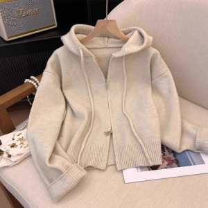 秋冬加厚减龄洋气外搭毛衣女气质宽松慵懒拉链长袖连帽针织衫上衣
