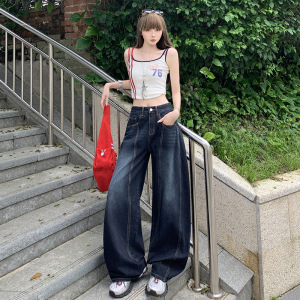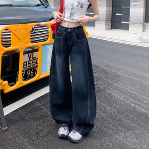 美式复古刺绣弯刀牛仔裤女2025年秋季新款高腰直筒宽松阔腿拖地裤