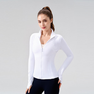 秋冬高领运动外套修身显瘦瑜伽上衣裸感带指套加厚户外跑步健身服