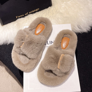 新款秋冬跨境外贸大码毛毛拖鞋女外穿厚底家居室内棉拖鞋厂家批发