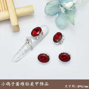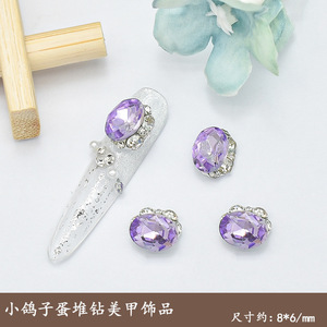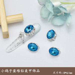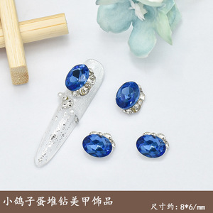 迷你鸽子蛋美甲饰品爆闪K9水晶小椭圆廋蛋纯手工堆钻装饰指甲配饰