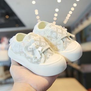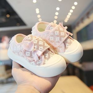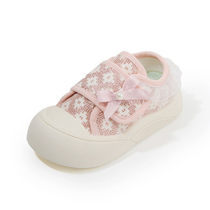 女童鞋子2025春秋新款儿童帆布鞋蝴蝶结宝宝学步鞋洋气蕾丝休闲鞋