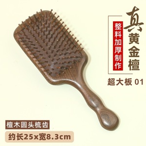 超大板-黄金檀木气垫梳-圆头齿-尖尾柄