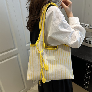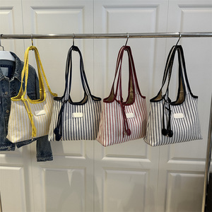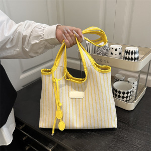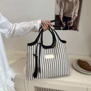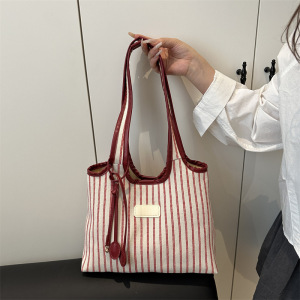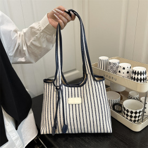 慵懒感新款条纹小众托特包女个性休闲学生上课百搭韩版单肩包