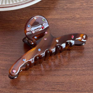 法式高级质感醋酸气质抓夹精致复古镶彩钻系列鲨鱼夹后脑勺盘发夹