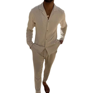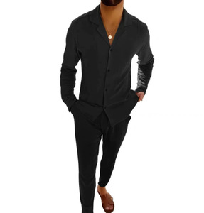 新款跨境欧美男士休闲套装春秋季时尚长袖长裤两件套开衫套装男装