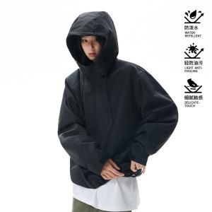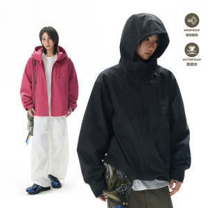 日系登山服冲锋衣男连帽夹克男女潮流春秋季防水防风运动男装外套