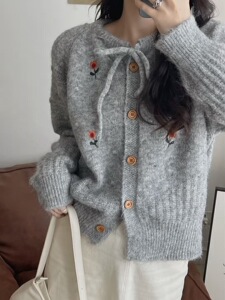 温柔风软fufu甜美绣花毛衣外套女秋冬2025新款韩系针织开衫上衣服