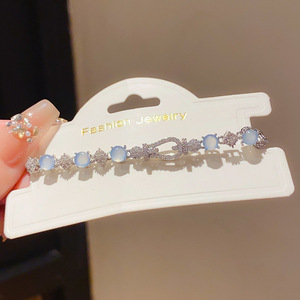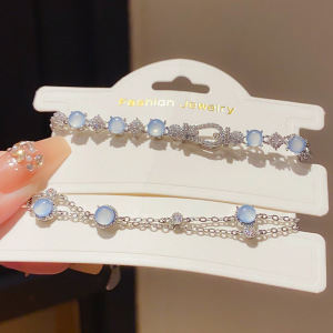 轻奢锆石猫眼石方形马蹄扣双层手链法式小众气质精致高级感手饰女