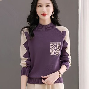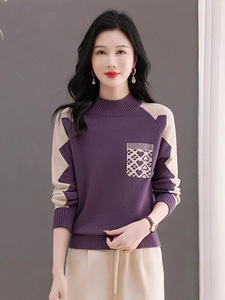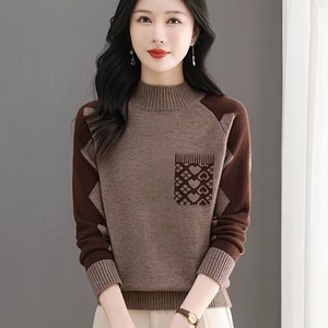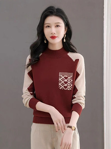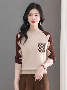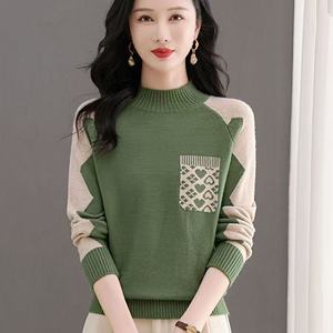 女士高端洋气秋冬25新款大码加厚拼色宽松显瘦提花短款毛衣针织衫