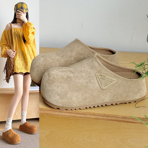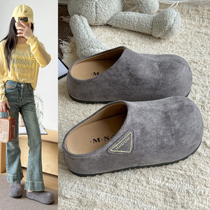 厚底增高勃肯鞋女2025春夏百搭大头鞋一脚蹬小个子包头半拖鞋女