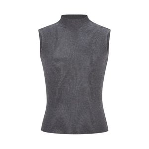 实拍-辣妹风无袖半高领针织背心女装夏季修身显瘦简约灰色上衣