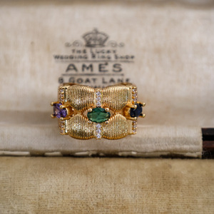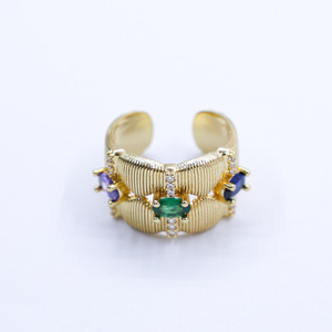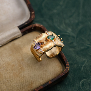 金色镶钻活口戒指女珐琅彩宝指环锆石中古轻奢小众高级感尾戒手饰