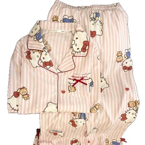 跨境工厂直销甜美可爱条纹凯蒂猫睡衣女春秋长袖长裤家居服可外穿