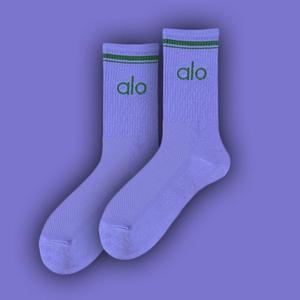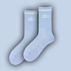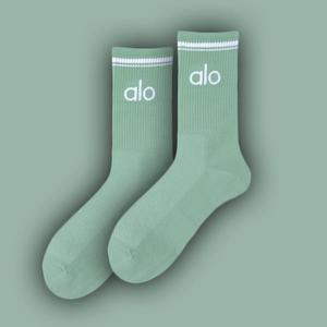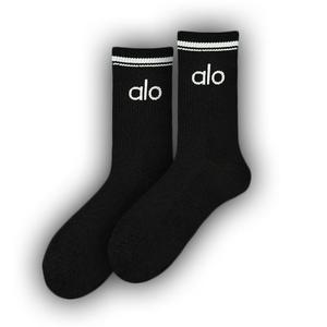 新款alo瑜伽运动袜子棉字母独立包装棉中筒男女袜黑白灰情侣袜子