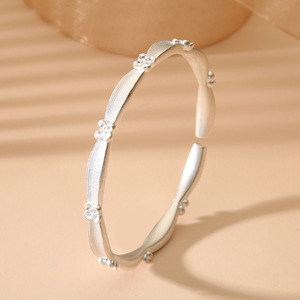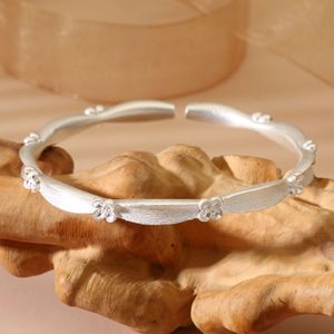 8482号足银999.9古法开口月桂花银手镯女9999足银镯子小众国风