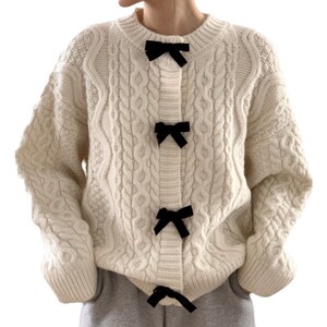 法式春秋新款甜美风蝴蝶结软糯毛衣女小香风复古麻花针织开衫外套