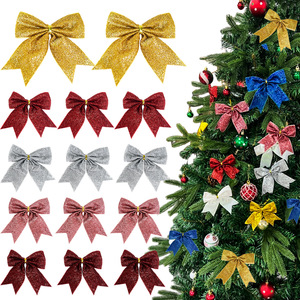 跨境金葱蝴蝶结挂件圣诞节日布置道具蝴蝶结挂饰圣诞树装饰丝带结