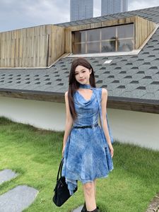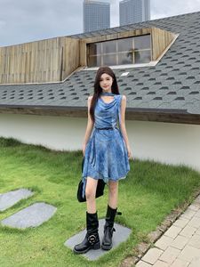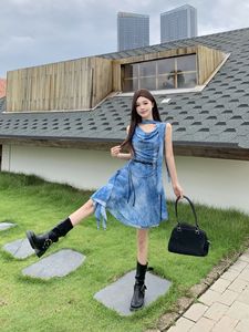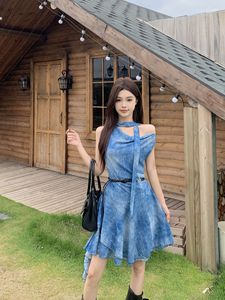 度假风设计感斜肩连衣裙女2025夏季新款辣妹不规则收腰显瘦短裙子