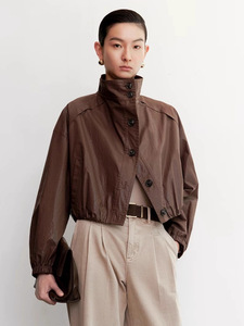艾**短外套商场同款2025秋季新品宽松高领排扣立领上衣R103019